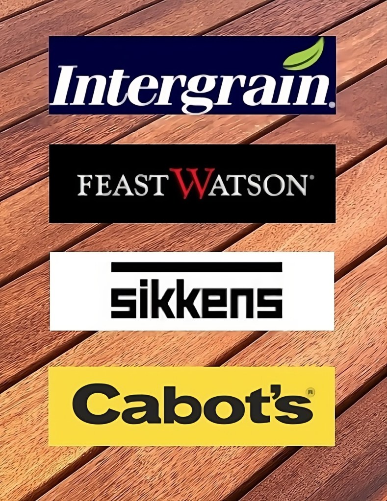 For a recoat we match the original products or equivalent. For a sanded restoration or new build, a product best suited for requirements. Generally, we use and recommend Intergrain Ultradeck, Sikkens Cetol HLSe, Feast Watson Wet Look and Cabots Traditional Decking Oil. If you have a preference for a product, we are happy to use them.